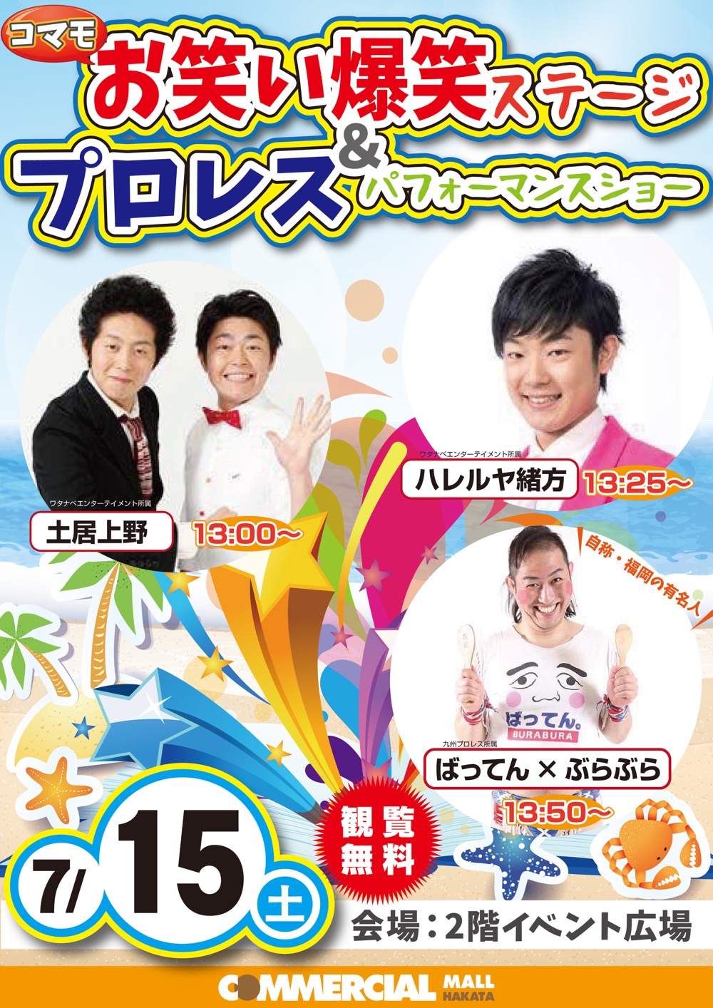 7月15日(土) お笑い爆笑ステージ&プロレスパフォーマンスジョー開催のお知らせ!