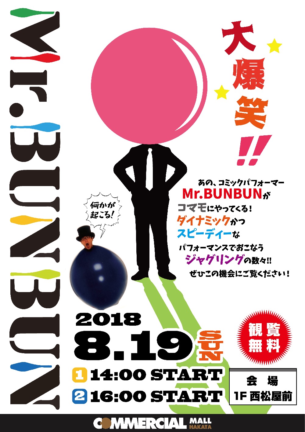 8月19日(日) Mr.BUNBUNパフォーマンスショー開催のお知らせ!