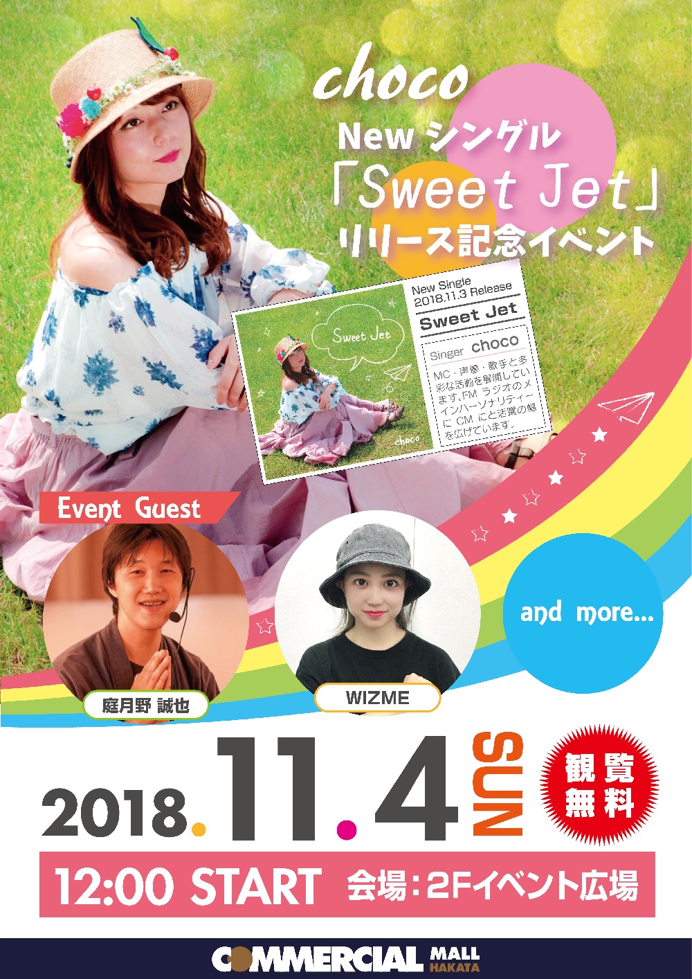 2018.10.25 11/4日(日) choco シングルリリース記念ライブ開催のお知らせ! 日時:11/4(日) 時間:12:00 開演 ・出演:庭月野 誠也(電子紙芝居)、WIZME、choco、and more ・閲覧無料 ・場所:2階イベント広場