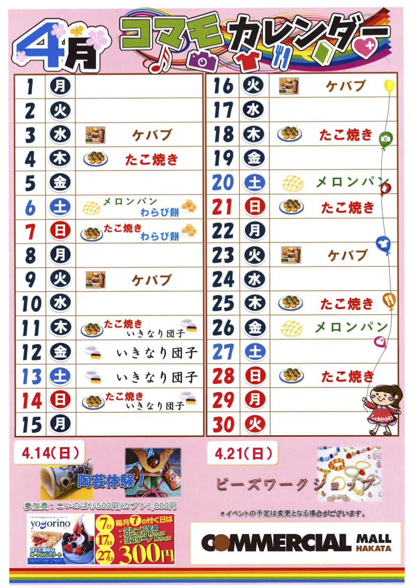 コマーシャルモール博多の店頭催事は、メニューも豊富!