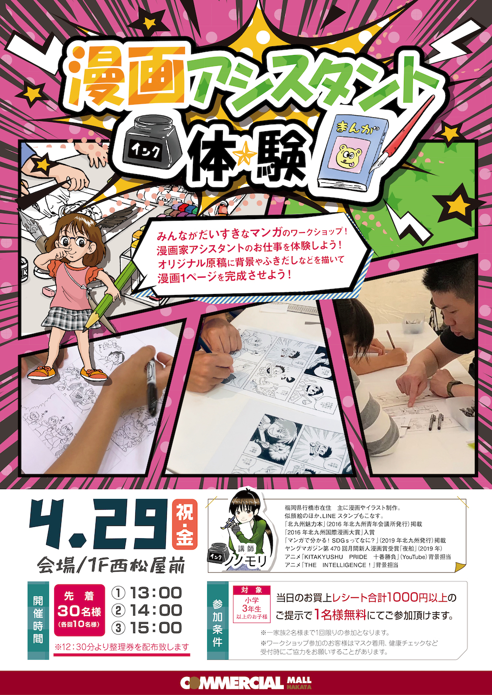 GW 4/29(祝・金)「漫画アシスタント体験」教室 開催のお知らせ