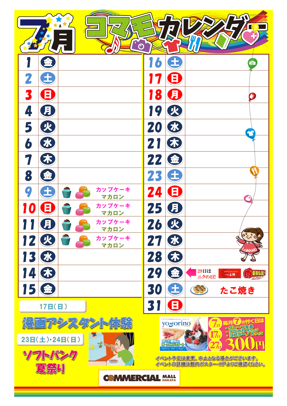 コマモ7月催事カレンダー